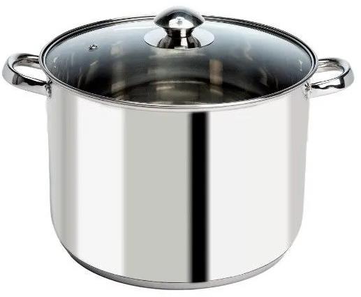 Дно 0,5мм алюминий + 1,5 мм железо + 0,5 мм алюминий, с одной степенью защиты ,Корпус цилиндрической формы Материал: нержавеющая сталь Стеклянная крышка в форме буквы С Клёпаные полые ручки из нержавеющей стали Ручка на крышке из нержавеющей стали Зеркальная полировка внутри и снаружи Внутри мерная шкала Дно толщиной 3 мм