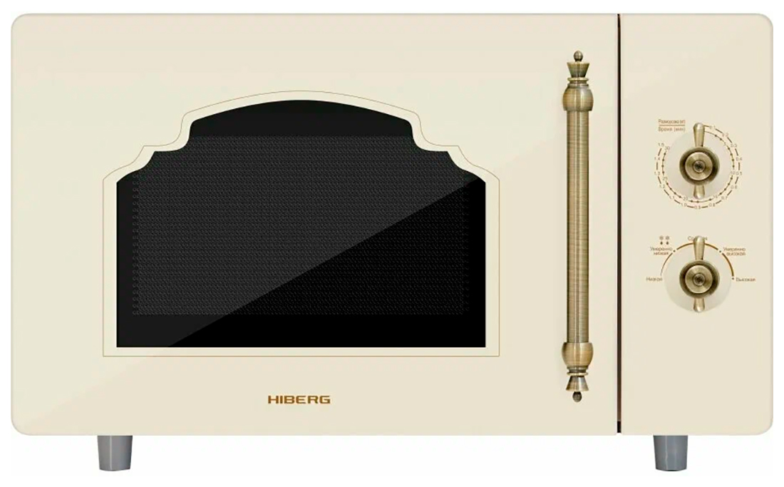 Микроволновая печь выполнена в ретро-дизайне с фасадом из закаленного стекла бежевого цвета, поэтому станет органичным дополнением интерьеров кухонь в классическом стиле, кантри или прованс. Удобная металлическая ручка и стилизованные ручки регуляторов цвета состаренной латуни выгодно подчеркивают аутентичность модели.