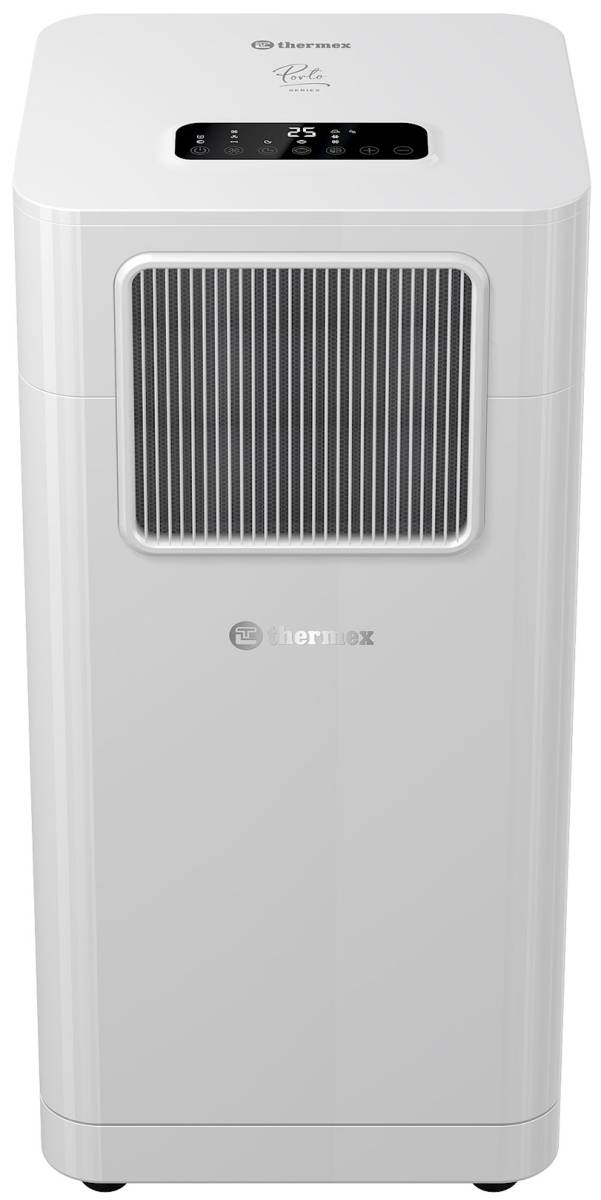 Портативный кондиционер Thermex (Термекс) Porto 7 изготовлен в компактном корпусе и устанавливается на колесное шасси. Для управления предусмотрена сенсорная панель с дисплеем, на который, помимо основной информации, можно выводить данные о найденных ошибках. Встроенный компрессор делает использование универсальным.
