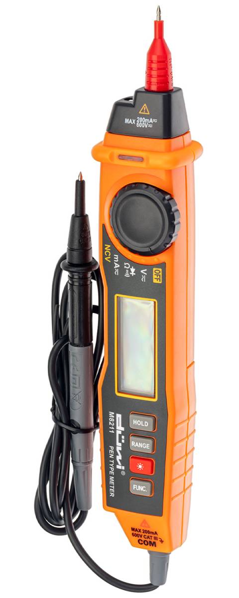 Цифровой мультиметр-пробник в форме щупа duwi M8211 PROFI используется для измерения постоянного и переменного напряжения, постоянного тока, сопротивления, прозвонки цепи и теста диодов. Для простоты использования полученные данные выводятся на экран.