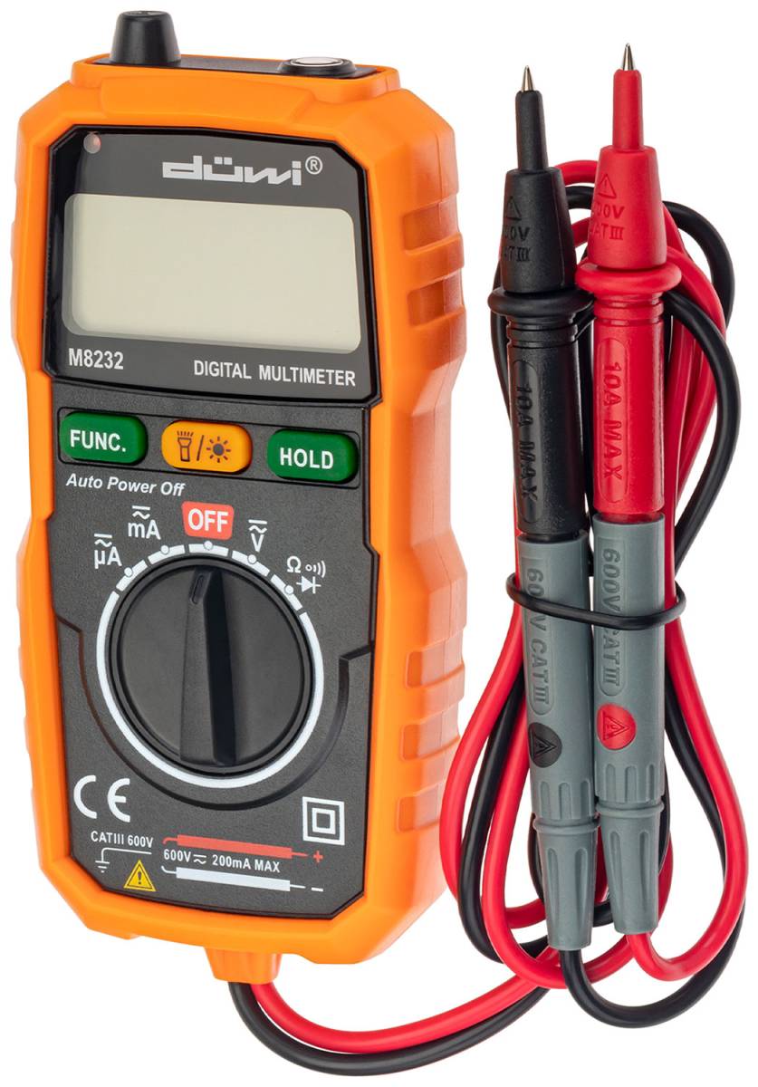 Цифровой мультиметр со светодиодным фонариком duwi M8232 используется для измерения постоянного и переменного напряжения, постоянного и переменного тока, сопротивления, проверки диодов и прозвонки цепи. Для простоты использования полученные данные выводятся на экран. А подсветка дисплея обеспечивает работу в темных условиях.
