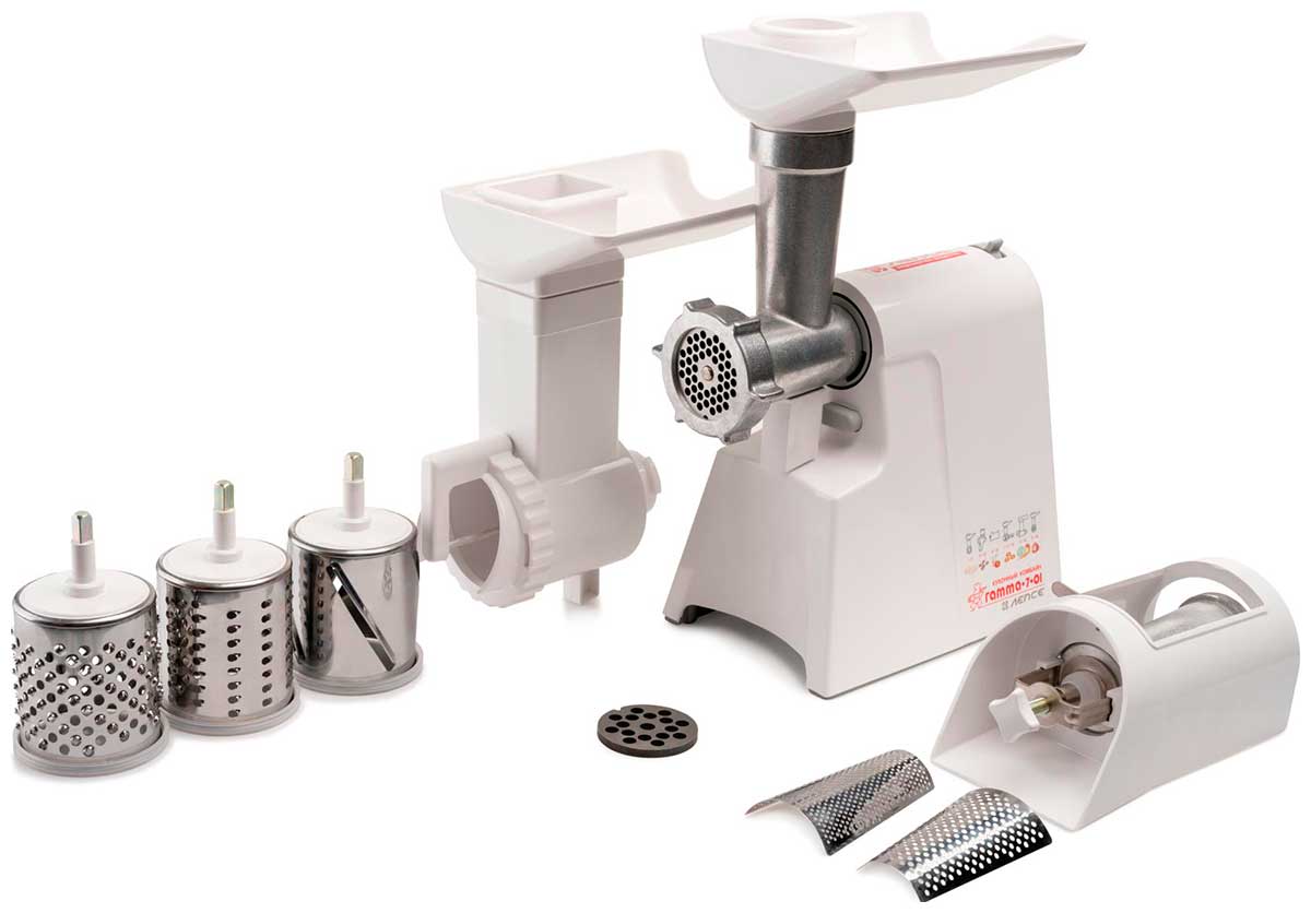 Надежная, недорогая и производительная электромясорубка российского производства со множеством насадок и функций. Применяется для переработки пищевых продуктов (мяса, рыбы, грибов и т. д.) в домашних условиях. Изделие сертифицировано в системах ГОСТ Р и СБ МЭК СЭ.