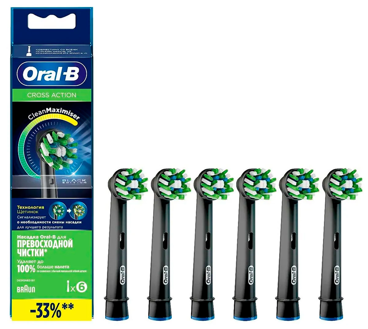 Улучшенные насадки с технологией CleanMaximiser помогут не забыть вовремя поменять насадку: зеленые щетинки насадок становятся желтыми, когда приходит время замены. Для более эффективной чистки стоматологи рекомендуют менять насадку каждые 3 месяца.