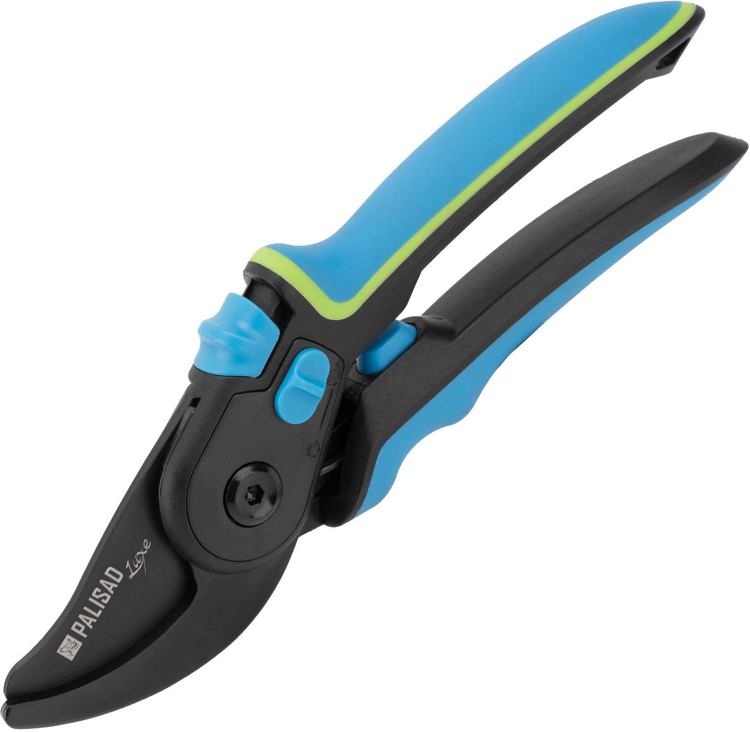 Секатор прямого реза Palisad LUXE 604795 длиной 225 мм, с регулировкой захвата и трехкомпонентными рукоятками, используется для срезания живых веток толщиной до 24 мм. Режущее лезвие перемещается в плоскости, параллельной опорному, поэтому срез получается ровным и чистым, а ущерб для растения сведен к минимуму. Тефлоновое покрытие лезвия уменьшает трение, а шарнир особой конструкции увеличивает силу сжатия на 10%, что позволяет пользователю прикладывать меньше усилий. Плотность примыкания лезвий можно регулировать при помощи винта. Секатор будет полезен для ухода за растениями на загородном участке. Преимущества Долговечность — лезвия изготовлены из прочной высокоуглеродистой стали и покрыты антикоррозионным составом, трехкомпонентные полипропиленовые рукоятки устойчивы к климатическим воздействиям. Высокий ресурс — режущее лезвие прошло индукционную закалку и имеет прецизионную заточку, поэтому долго сохраняет эксплуатационные качества. Удобная работа с ветками разной толщины — переключатель «большая-малая рука» позволяет регулировать величину захвата. Надежная конструкция — между рукоятками имеется демпфер, защищающий их от поломки. Комфортная работа — благодаря выемке под палец в нижней рукоятке и вставкам из термопластичной резины инструмент удобно держать в руке. Безопасность — специальный фиксатор не дает лезвиям самопроизвольно раскрываться во время хранения или транспортировки.