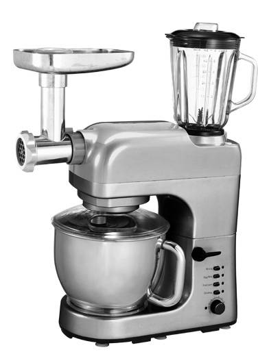 Планетарная тестомесильная машина GASTRORAG QF-2018AL предназначена для общепита и для дома. Миксер имеет функцию плавной регулировки скорости и 4 режима работы (замес, взбивание, блендер, мясорубка). Оборудование оснащено откидной рабочей головкой, съемной дежой из нержавеющей стали объемом 5,5 литра, 3 мешалками (крюк, плоский битер, венчик), а также 2 дополнительными насадками (блендером со стеклянным стаканом объемом 1,5 л и мясорубкой). Прочная конструкция устройства гарантирует безопасность эксплуатации и долгий срок службы.