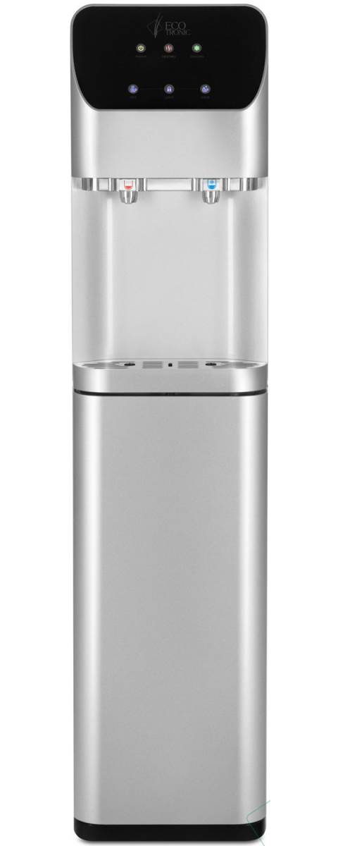 Пурифайер напольного типа с ультрафильтрационной системой очистки воды. Сенсорная панель управления с защитой от случайной подачи горячей воды. Подача воды останавливается повторным нажатием, либо подается порционно: 1 л горячей воды при однократном нажатии, 1.5 л холодной воды при однократном нажатии. Большая производительность и вместительные баки холодной и горячей воды. Мощность нагревательного элемента 550 Вт. Индикация работы пурифайера, нагрева и охлаждения воды. Корпус серебристого цвета с хромированными деталями: решеткой лотка и вставками на передней панели.