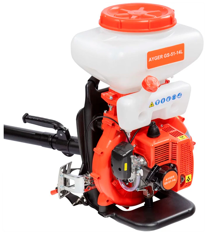 AYGER Ранцевый опрыскиватель бензиновый GS-51-14L- предназначен для ухода за растениями как на даче, так и на плантациях. Он эффективно подкормит растения и избавит их от насекомых. Также применяется для обработки растений гербицидами, оздоровления популяции, предотвращения эпидемий, распыления гранулированных удобрений и гранулированных химикатов. Этот аппарат также может применяться для тушения очагов возгорания. Благодаря бензиновому двигателю, устройство обеспечивает полную мобильность, что позволяет использовать его в открытом поле, где нет доступа к электросети.