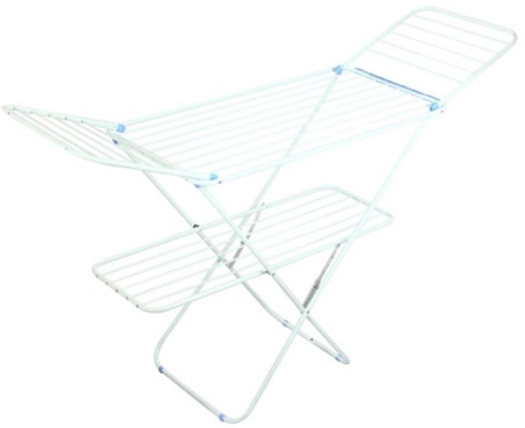 Сушилка для белья напольная, двухуровневая, с двумя откидными секциями. Размер: 177*55,5*110 см. Размер в сложенном виде: 131*55,5*6 см. Диаметр прутьев: 6 мм. Диаметр трубок каркаса: 16 мм. Максимальная рабочая длина: 30 м. Максимальная нагрузка: 20 кг. Материал: окрашенный металл, пластмасса. Металлические прутья увеличенной толщины (диаметр 6 мм) не прогибаются, позволяют сушить белье без заломов, ускоряя сушку за счет лучшей вентиляции. Простой механизм складывания. Компактна в сложенном виде. Пластиковые накладки на опорах для устойчивости и защиты напольного покрытия.