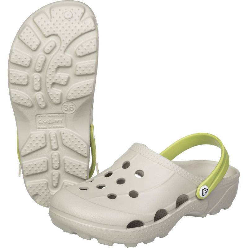 Сабо женские модели Ола выполнены в белом цвете с зеленым ремешком. Размер 41. Данная модель отлично подойдет для сотрудников предприятий общественного питания, медицинских работников, работников пищевой промышленности, производств легкой промышленности и др. Верх и подошва изготовлен из маериала ЭВА. Литьевой метод крепления подошвы. Мужские сабо с открытой пяткой легко надевать и снимать. Упругая подошва способствует лучшей амортизации - ноги меньше устают, а широкая носочная часть препятствует деформации пальцев ног. Благодаря отверстиям отлично пропускает воздух. Сабо, выполненные из EVA, абсолютно мягкие, водонепроницаемые, практичные, легкие, не скользят и не требуют особого ухода. Белый цвет - бессменная классика. В таких сабо сочетается строгость, простота и стиль. Такая обувь придется по вкусу как взрослым, так и молодежи. Снимают нагрузку с позвоночника при ходьбе за счет повышенной эластичности ЭВА материала. Если Вам приходится целый день находиться на ногах, то эта модель определенно для Вас. Массажная стелька из мягкого материала снижает нагрузку на суставы и помогает Вашим ногам ощутить легкость и надолго забыть про усталость. Широкая носочная часть препятствует деформации пальцев ног. Отверстия по всей союзке создают хорошую циркуляцию воздуха и помогают ноге дышать. Дополнительные характеристики сабо: легкие, неприхотливы в уходе, не впитывают запахи, гипоаллергенны, на поверхности не развиваются бактерии и микробы. Большемерит на 1 размер. Срок годности неограничен. Минимальная рекомендованная температура эксплуатации, позволяющая сохранить свойства материала, из которого изготовлена обувь - до -10 °C. Предназначены для защиты от общепроизводственных загрязнений. Соответсвтуют стандартам ТР ТС 017/2011. Цвет на изображении товара в интернет-магазине или в печатном каталоге может отличаться от оригинала из-за особенностей цветопередачи монитора.