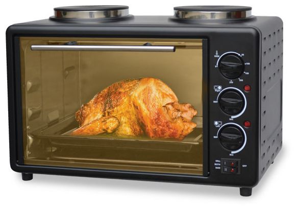 21л, 2600Вт, духовка 1200Вт, конфорки 152мм+152мм (700Вт+700Вт), механ.управление, 3 режима работы духовки (верх, низ, верх+низ), раздельная регулировка температуры духовки и конфорок, комплектация - металлическая решетка, противень и ухват. Цвет: чёрный.
