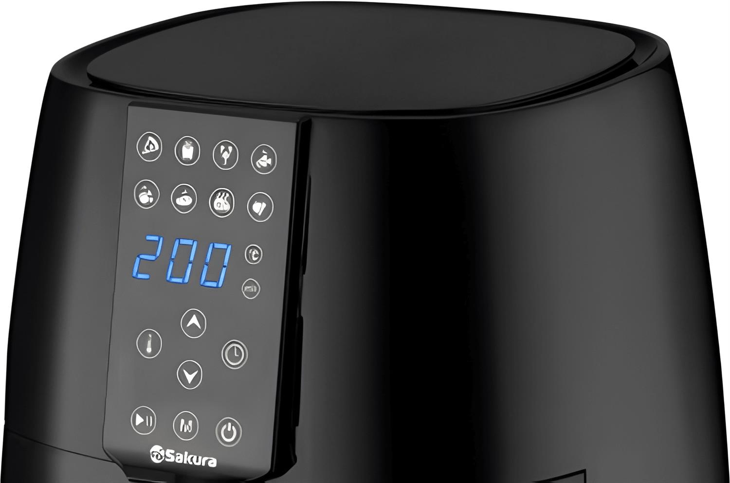 1500 Вт, чаша с антипригарным покрытием 4,0 л, 8 программ приготовления, таймер со звуковым сигналом, регулировка температуры 80-200С, сенсорное управление, готовит без масла или с минимальным его использованием. Подходит для всех блюд, которые готовятся в духовке. Цвет черный. Длина шнура 80см. Размер устройства в упаковке: 305x305x295 мм