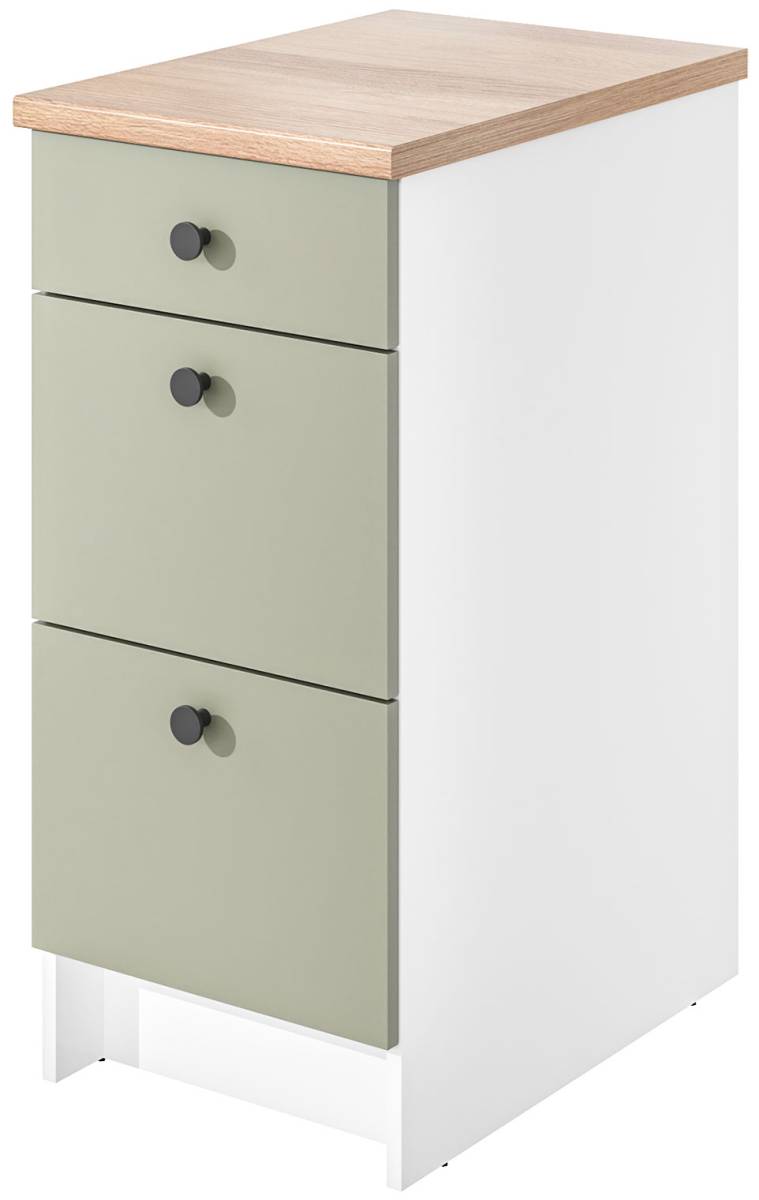 Компактный напольный шкаф со столешницей и тремя выдвижными ящиками, является отличным дополнением к основным модулям, увеличивающим место для хранения кухонной утвари и продуктов в кухонном гарнитуре. Создавайте кухонный гарнитур, полностью отвечающий вашим потребностям. Данный модуль так же можно использовать самостоятельно.