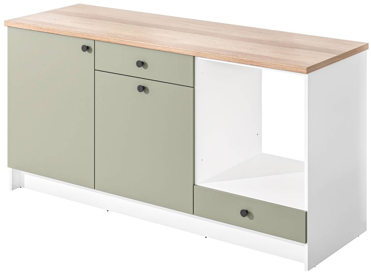 Кухонный модуль укомплектован матовыми фасадами, надежными, долговечными и простыми в уходе. Двери можно расположить с открыванием как влево так и в право, как вам удобно.