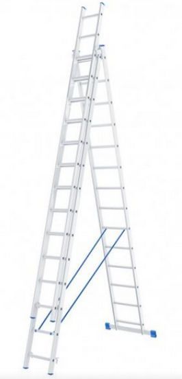 Алюминиевая трехсекционная лестница СИБРТЕХ 3х14 ступеней 97824 применяется для высотных работ, как покраска фасада дома, монтирование электроосветительных приборов, работа в саду и др. Трансформируется в четыре различные формы и подходит для выполнения работ на высоте до 7.5 м. Защиту от скольжения на рабочих поверхностях обеспечивают заглушки и широкая траверса. Технические характеристики СИБРТЕХ 97824 Тип трехсекционная Материал алюминий Рабочая высота, м 7,5 Max рабочая нагрузка, кг 150 Min длина, м 3,967 Ширина лестницы, мм 445 Количество ступеней, шт 3х14 Размер в сложенном состоянии, см 396.7х44.5х18 Регулировка опоры угловой траверсы нет min длина в сложенном состоянии, м 3.967 Вес, кг 18,3 Габариты, мм 3967х445х180