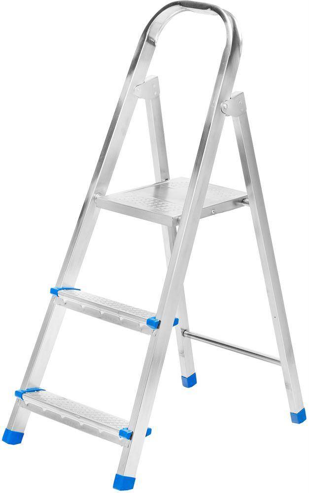 Стальная оцинкованная стремянка Сибртех 97835 с 3 ступенями позволяет повесить полку, картину или шкафчик, достать нужный предмет и решить другие задачи, для которых требуется доступ к предметам на высоте. Рама и ступени из стального профиля выдерживают вес до 120 кг. Расстояние от опорной поверхности до площадки составляет 54 см, при среднем росте пользователя 170 см рабочая высота лестницы — 254 см. Необходимо соблюдать технику безопасности: размещать стремянку только на ровной плоскости и не использовать ее для работы с дрелью, шуруповертом и другим электроинструментом. Компактность и малый вес — лестница весит 3,46 кг, размеры в сложенном состоянии составляют 1035 х 385 х 105 мм, что удобно для хранения и транспортировки.