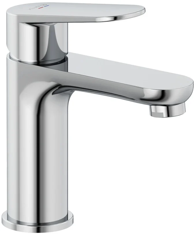 однорычажный смеситель на умывальник монтаж на одно отверстие литой рычаг управление сверху керамический картридж с ограничителем горячей воды гибкая подводка G 3/8 система быстрого монтажа без донного клапана