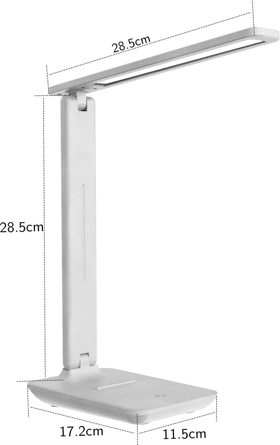 Номинальное напряжение: 230 в~50 Гц / Световой поток 480 Лм / 3-ступенчатый диммер / Дневной свет / Сенсорное управление / Питание от сети / Покрытие корпуса светильника стилизовано под кожу / Удобная подставка (для смартфона, зеркала) / Материал корпуса: ABS-пластик, текстура "кожа" / Цвет корпуса: белый / Степень защиты от пыли и влаги: IP20 /