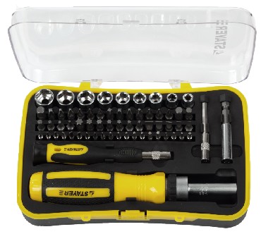 Биты подробно: 1/4" : SL3, SL4, SL5, SL6, SL7, PH0, PH1 (2 шт), PH2 (2 шт), PH3 (2 шт), PZ0, PZ1 (2 шт), PZ2 (2 шт), PZ3, H2, H2.5, H3, H4, H5, H6, T10, T15, T20, T25, T27, T30, T40, SL1, SL1.3, SL1.5, SL2, SL2.5, SL3, PH000, PH00, PH0, PH1, T6, T7, T8, T9, T10, T15