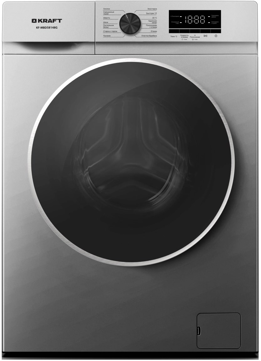 Стиральная машина KRAFT KF-MBDS8148G с максимальной загрузкой белья до 8 кг предлагает 14 различных программ стирки. Максимальная скорость отжима достигает 1400 оборотов в минуту.