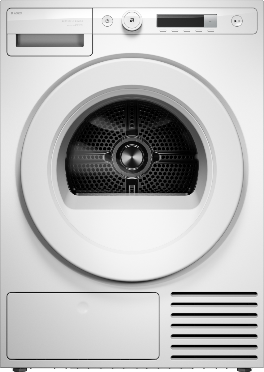 Сушильная машина ASKO T108HW из серии Classic — это продуманное решение для бережной и эффективной сушки в домашних условиях. Её белоснежный корпус и панель управления в едином стиле легко вписываются в любой интерьер, а возможность перенавесить дверцу делает установку гибкой даже в ограниченном пространстве. Внутри — вместительный барабан из нержавеющей стали объёмом 117 литров, рассчитанный на загрузку до 8 кг. Технология Soft Drum в сочетании с лопастями Butterfly обеспечивает мягкое обращение с тканями, равномерно распределяет бельё и способствует деликатной циркуляции воздуха, снижая износ и заломы.