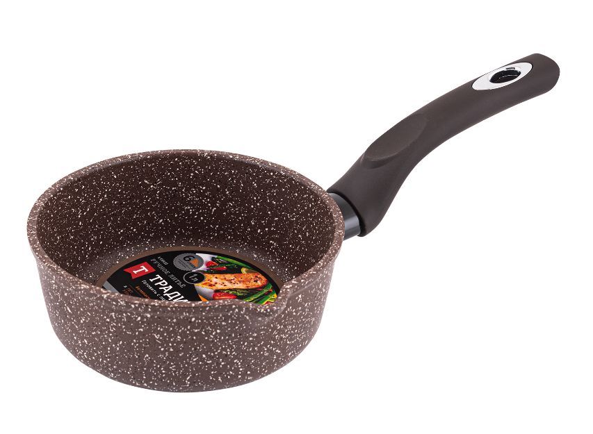 Ковш литой серии Доломит, диаметром 16 см и объёмом 1 литр идеально подходит для приготовления малых объёмов пищи. В нём можно потушить мясо, грибы, сварить кашу, яйца, рис, соусы, молочные блюда, макаронные изделия, какао и даже десерты! Литой корпус не деформируется при нагреве, утолщенное дно гарантирует прочность и долговечность посуды. Антипригарное покрытие не изменяет вкус и запах пищи, препятствует ее пригоранию. Оно позволяет готовить с меньшим количеством масла/жира, что делает готовое блюдо менее калорийным. Покрытие не содержит PFOA. Рукоятка soft touch не скользит и не нагревается, имеет эргономичную форму и удобно лежит в ладони. В ней предусмотрено отверстие для подвеса. Сковорода подходит для всех типов бытовых плит, кроме индукционных. Диаметр верха 16 см Диаметр дна 12 см Толщина дна 5 мм Высота стенок 7 см