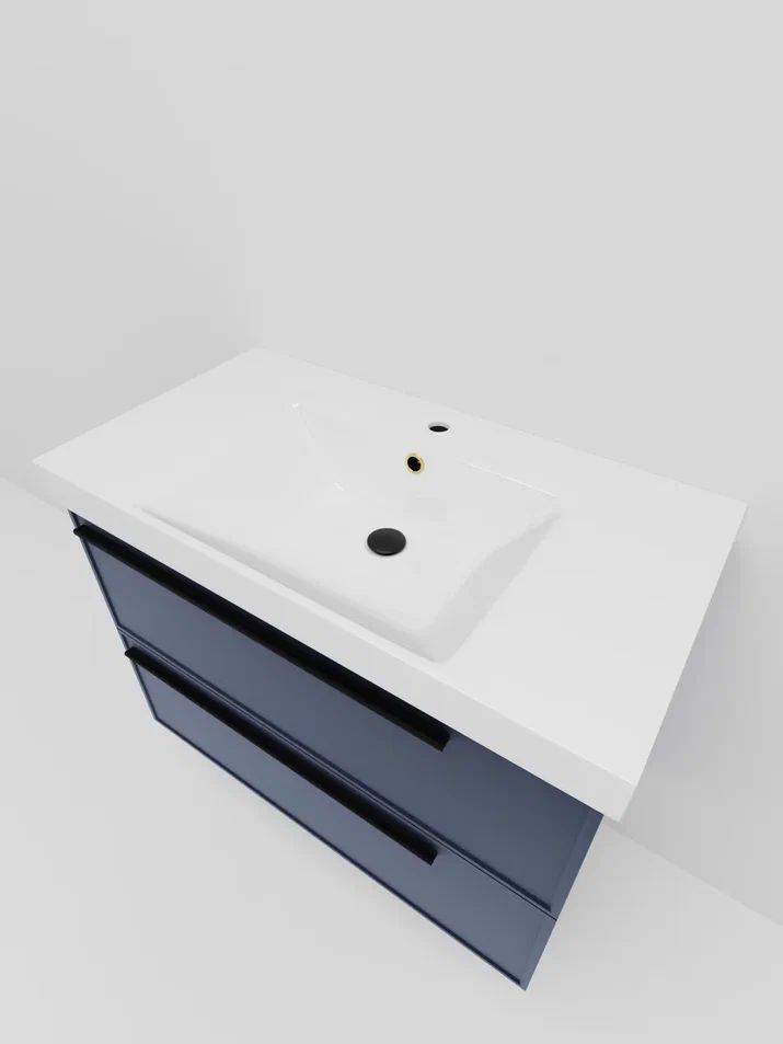 Тумба с раковиной La Fenice ELBA Twin Blu Grigio синяя матовая 90 см + CU.NN.90L 90 см чаша слева