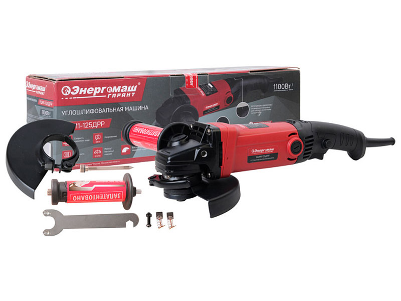 УШМ1-125ДРР универсальная болгарка (УШМ) бытового назначения под рабочий диаметр диска 125 мм. Имеет компоновку с длинной рукоятью и рассчитана под хват двумя руками. Основное преимущество данной компоновки лучший контроль и удобство использования инструмента при зачистных и шлифовочных операциях. Работу в местах с трудным доступом призван облегчить низкопрофильный корпус редуктора клиновидной формы. Особенность модели функция электронной регулировки оборотов (4000 11000 об / мин), благодаря которой достигается оптимальный подбор частоты вращения в зависимости от типа используемой оснастки и обрабатываемого материала. Для обеспечения высокого ресурса инструмента особое внимание уделено наиболее нагруженным элементам конструкции: электромотор покрыт несколькими изоляционными слоями термостойкого лака и имеет дополнительную защиту от пыли и абразивных частиц, благодаря закалке, повышенной прочностью обладают шестерни редуктора. Кроме того, применение шестерен с конической формой зуба позволило снизить уровень шума при работе. Инструмент прост в обслуживании и эксплуатации. Предусмотрена функция быстрого доступа к щеткам, позволяющая их замену без разбора элементов корпуса. Для удобства пользователя модель снабжена быстросъемным защитным кожухом, который надежно фиксируется при помощи специального зажимного рычага это дает возможность при необходимости быстро изменять положение кожуха, не прибегая к помощи вспомогательного инструмента, а также удобной патентованной рукоятью со специальным твердосплавным карандашом для нанесения разметки на поверхности любой сложности, включая ржавые, влажные и маслянистые.