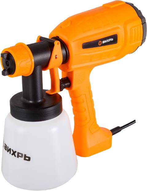 Электрический краскопульт Вихрь ЭКП-400 обеспечивает ровное покрытие малых поверхностей любой конфигурации краской, лаком и другими ЛКМ с вязкостью не более 80 DIN/ceк. Подходит для бытового использования в помещениях и на открытом воздухе при плюсовых температурах и влажности не выше 80%. Конструктивно Вихрь ЭКП-400 состоит из горизонтально расположенного двигателя, встроенной системы распыления HVLP, бака для ЛКМ с нижним расположением и рукояти с противоскользящим покрытием.