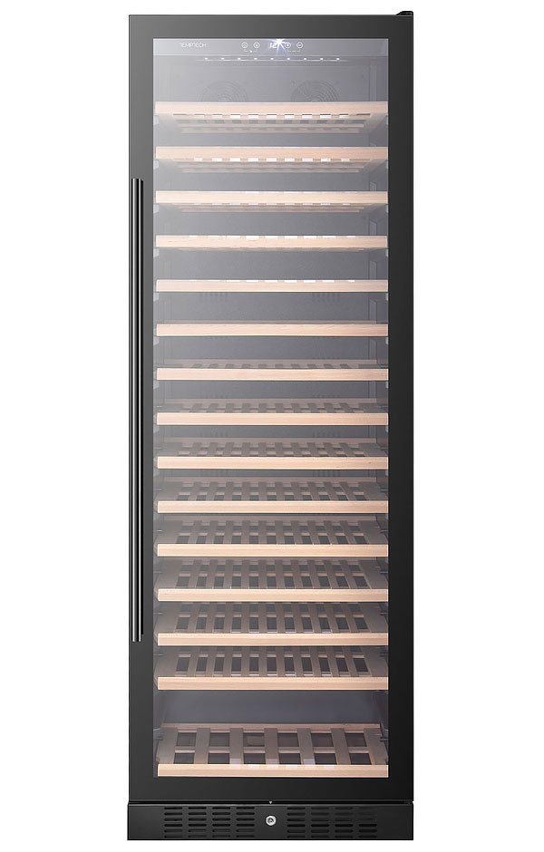 Винный шкаф Temptech Classique CL180SB предназначен для охлаждения, хранения и демонстрации бутилированного вина в отелях, винных магазинах, на предприятиях общественного питания и торговли. Модель оснащена сенсорной панелью с цифровым дисплеем, 15 выдвижными полками, дверью с замком и белой светодиодной подсветкой. Дверца выполнена из двухслойного стекла с УФ-фильтром, передняя панель - из черного стекла, полки - из натурального бука без обработки химикатами.