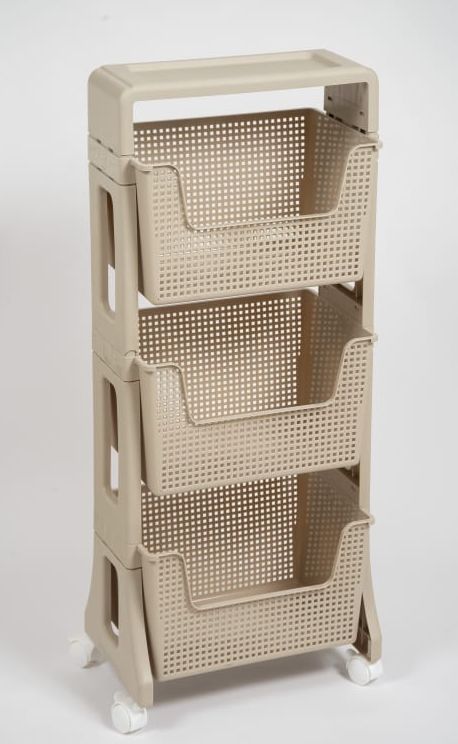 Материал: полипропилен. Цвет: латте. Количество полок: 3 шт. Наличие колес: есть. Ширина: 395 мм. Высота: 943 мм. Глубина: 260 мм.