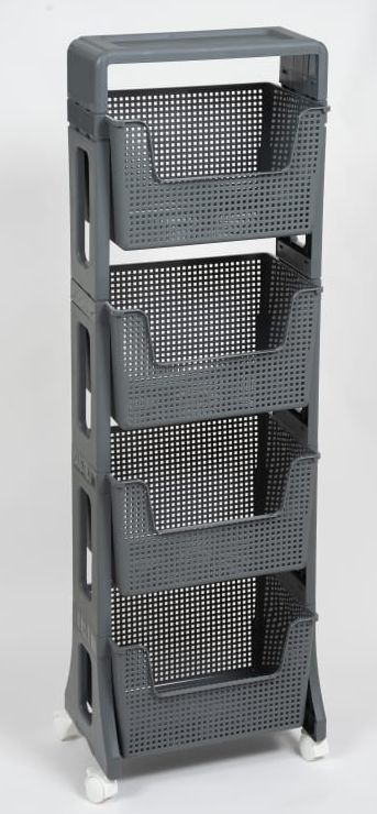 Материал: полипропилен. Цвет: серый. Количество полок: 4 шт. Наличие колес: есть. Ширина: 395 мм. Высота: 1228 мм. Глубина: 260 мм.