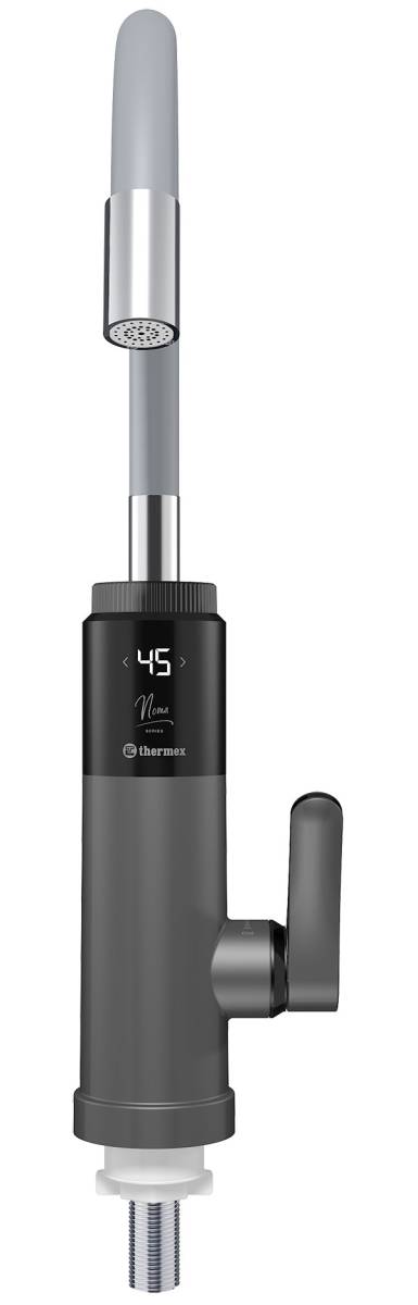 Проточный водонагреватель Thermex (Термекс) Noma 3000 оснащен механическим переключателем для выбора температуры. В передней части находится дисплей, который отображает текущие параметры работы изделия. Нагревательный элемент выполнен из нержавеющей стали, что обеспечивает долгий срок эффективной службы.