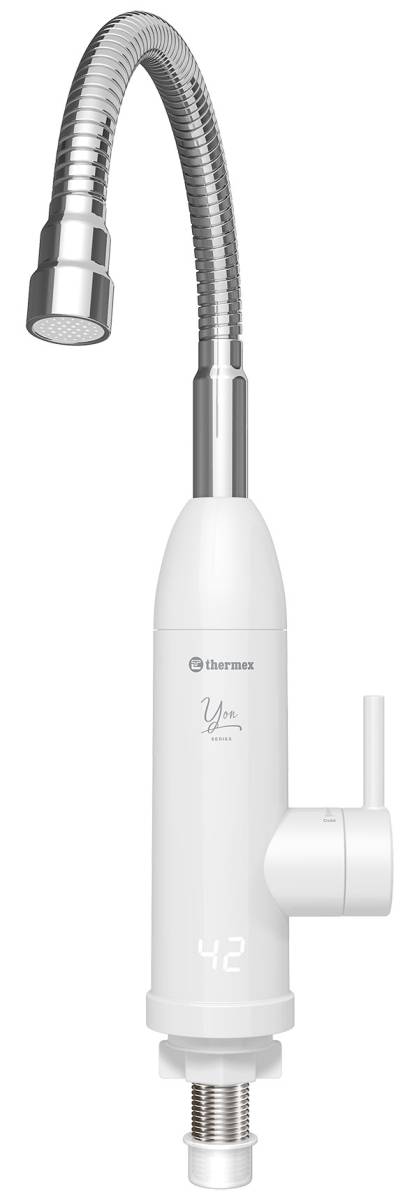 Проточный водонагреватель Thermex (Термекс) Yon 3000 выполнен в формате крана, который устанавливается на месте классического решения. Данное изделие подойдет для объектов, где полностью отсутствует система ГВС или происходят частые отключения. На корпусе предусмотрена индикация температуры для предотвращения травм со стороны пользователей.