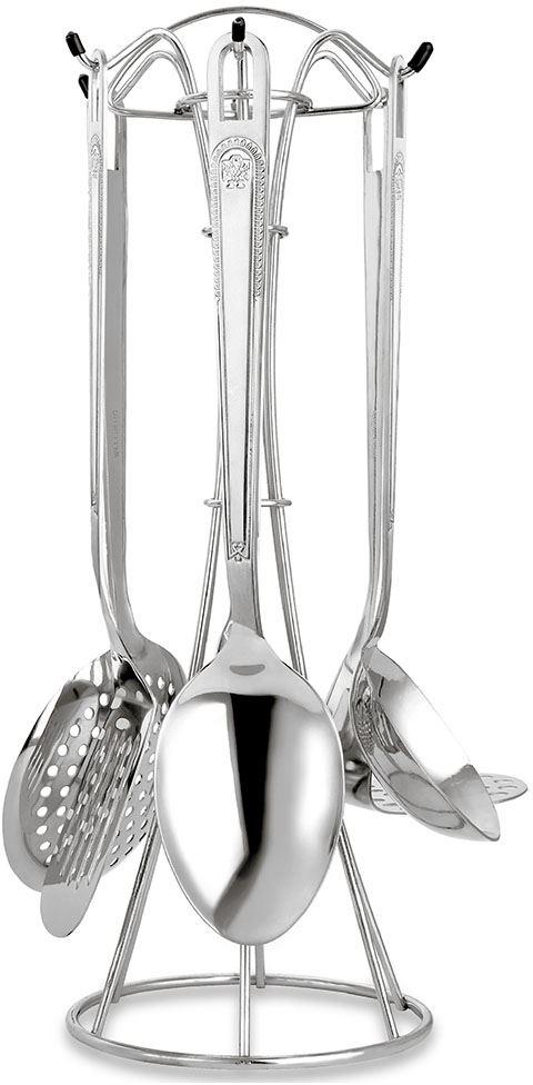 Кухонный набор ZEIDAN Z-2074 7 предм. , Кухонный набор 7пр. НЕРЖАВЕЮЩАЯ СТАЛЬ, металлическая подставка-туба, зеркальная полировка с рисунком (лопатка с прорезями, шумовка, половник, картофелемялка, поварская ложка, поварская вилка ). Подарочная упаковка.