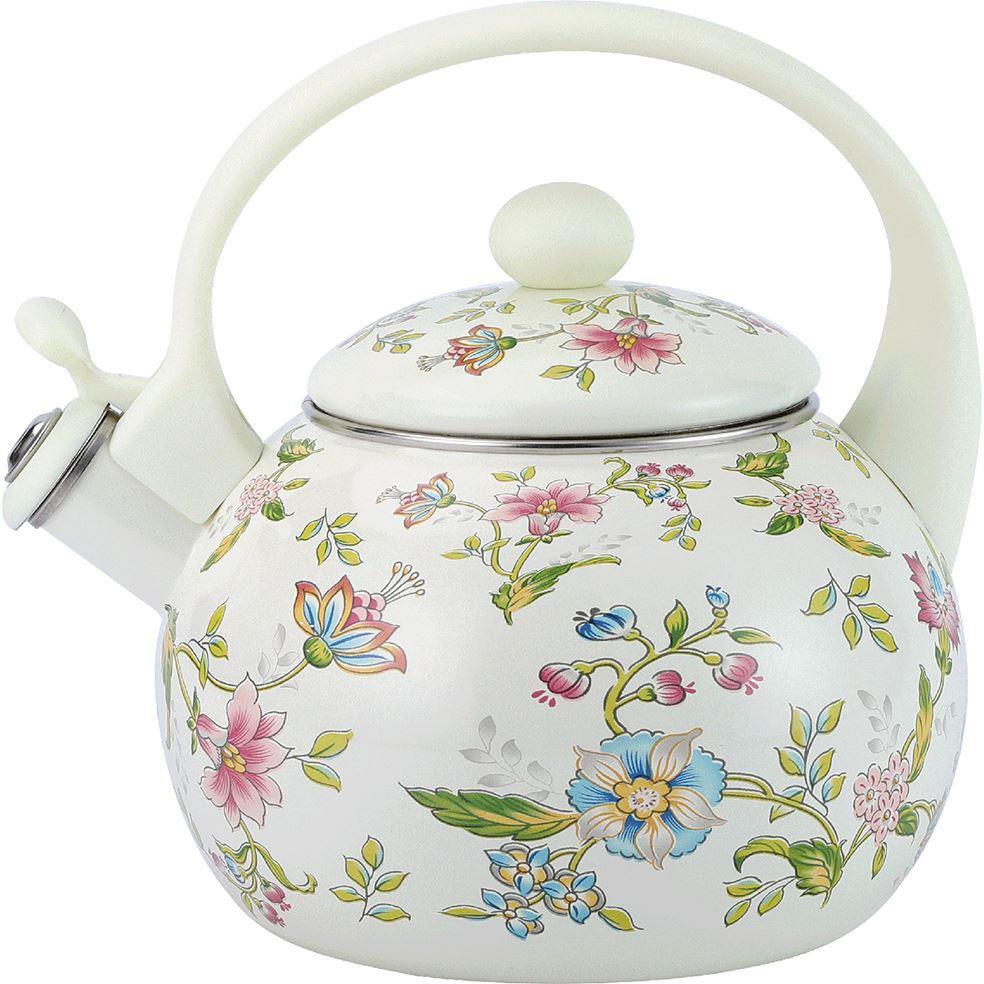 Чайник со свистком 2.5 л, эмалированная сталь, бакелитовая ручка, наружное покрытие - эмаль с рисунком. Подходит для индукции.