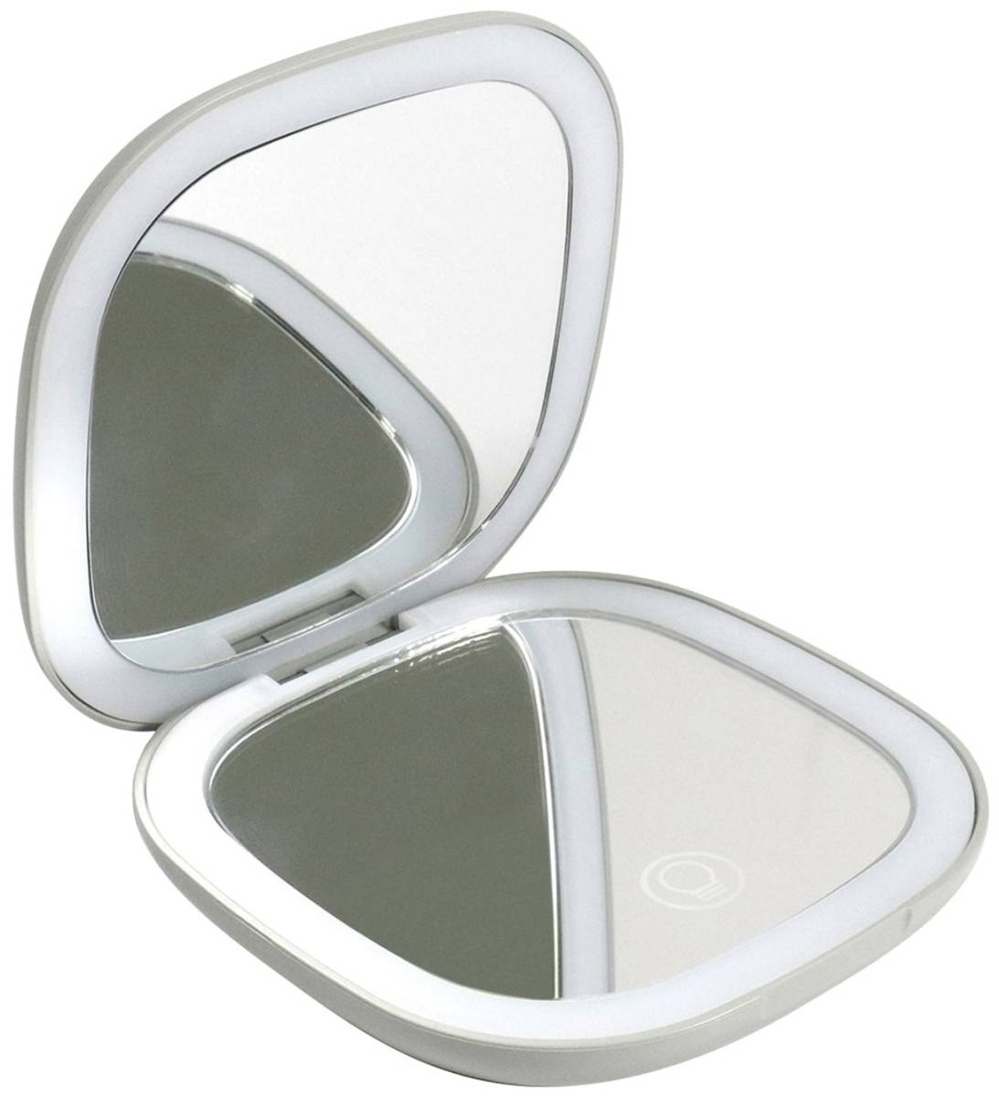 Вы всегда можете, по желанию, легким прикосновением выбрать один из трех оттенков подсветки, в зависимости от общего освещения в помещении или света за окном. В каждом из трех режимов вы можете долгим удержанием сенсора либо увеличивать яркость, либо уменьшать яркость (диммирование). Это уникальное свойство зеркала, поможет Вам сделать незабываемый макияж легко и удобно в любом месте, данное зеркало помещается даже в очень маленькую дамскую сумочку.