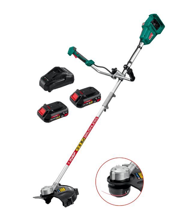 Напряжение изделия, В 36. Частота вращения шпинделя, об/мин 0-7000. Расположение двигателя нижнее. Режущий элемент леска / нож. Ширина скашивания (леска), мм 350. Ширина скашивания (нож), мм 255. Толщина лески, мм 2. Емкость аккумулятора, А·ч 2.0. Количество аккумуляторов 2. Зарядное устройство импульсное. Время заряда батареи, ч 1. Тип катушки полуавтоматическая. Тип рукоятки велосипедная. Тип штанги разъемная. Тип приводного вала - Ремень есть. Габариты, см 95х31.5х17.5.