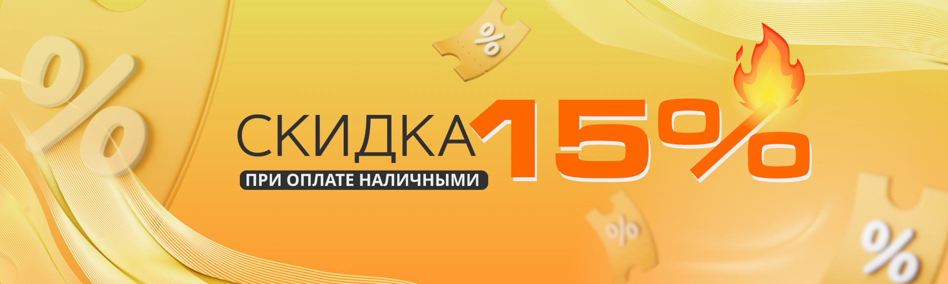 Скидка 15% на весь* ассортимент товара, при оплате наличными.